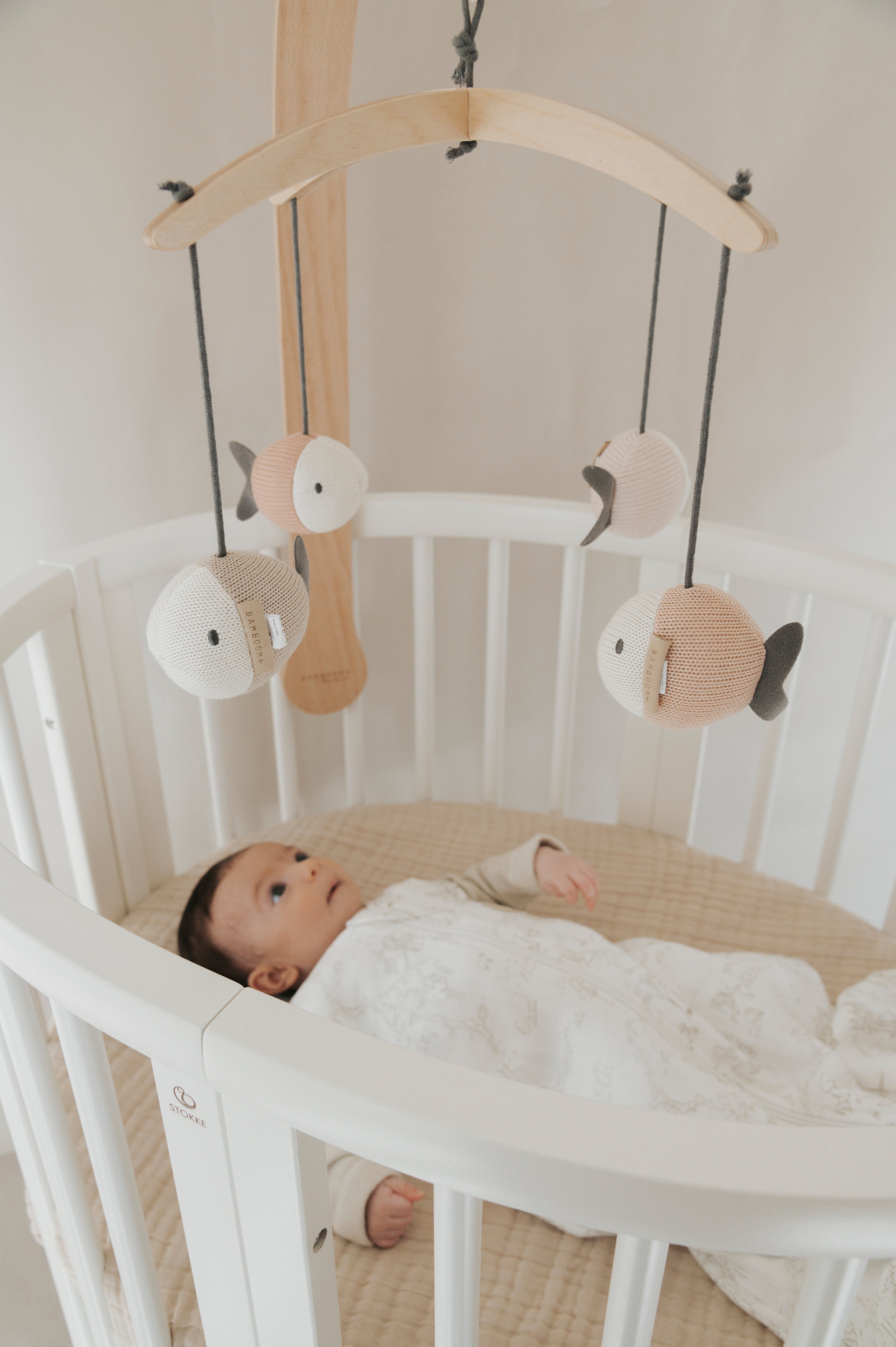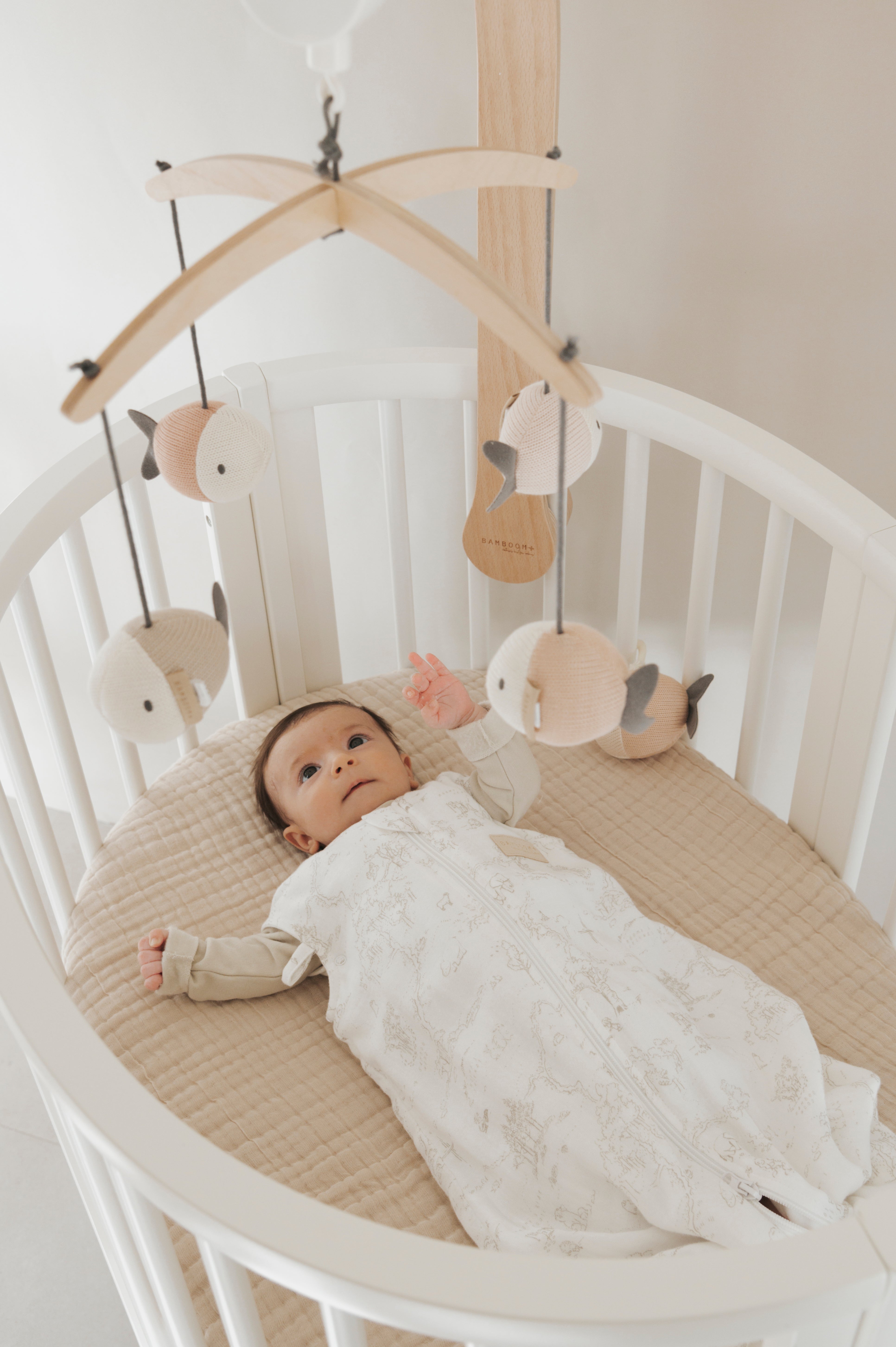 Machen Sie die Schlafenszeit magisch mit dem Bamboom-Mobile aus Naturholz mit süßen hängenden Waldtieren aus Naturstrick. Diese kleinen Tiere sind bunt und weich, in neutralen Farben gehalten und bewegen sich dank des Holzkarussells im Rhythmus der Musik. Ideal, um das Schlafzimmer Ihres Kindes zu einem noch einladenderen Ort zu machen.