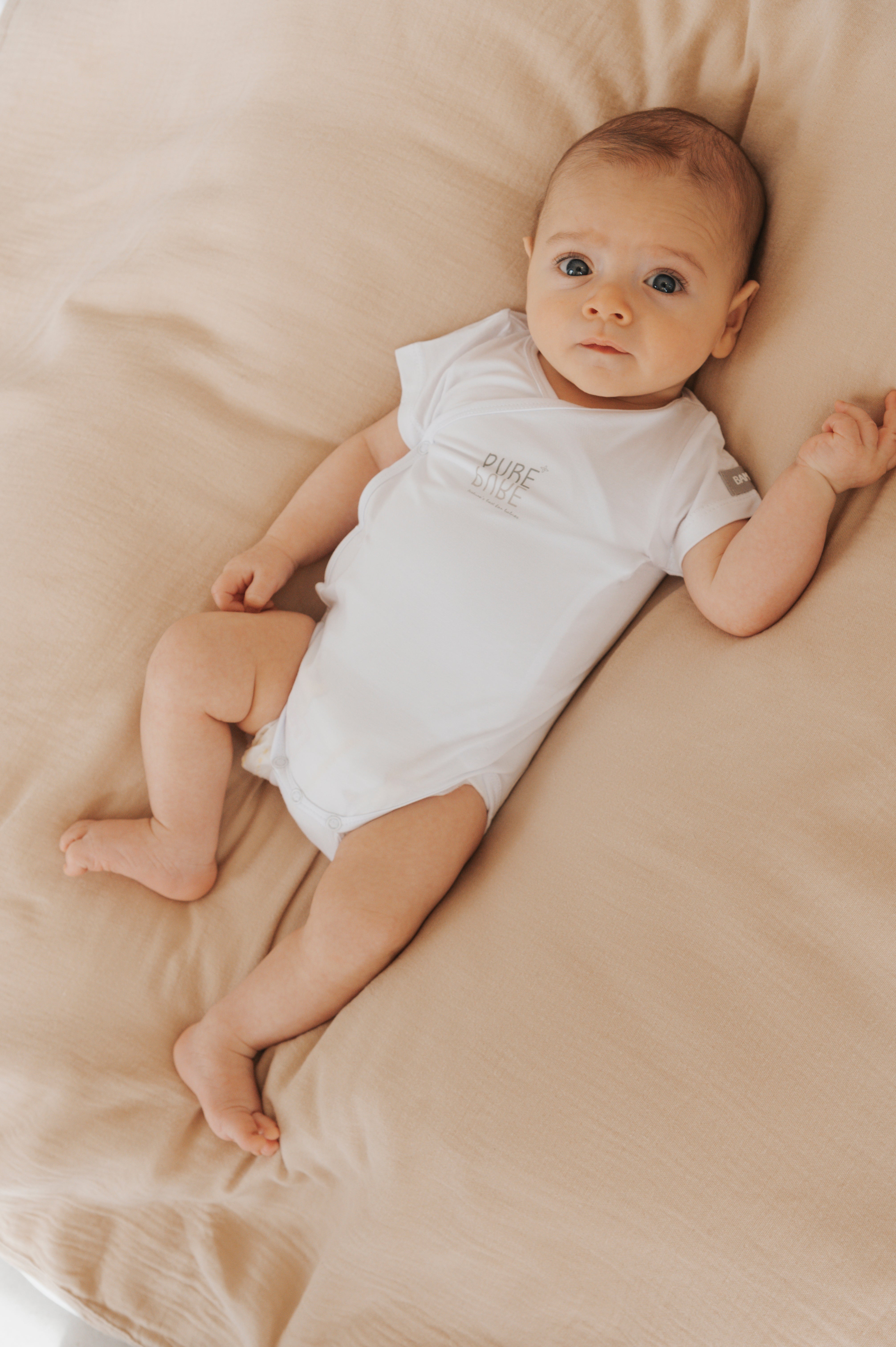 Die aus natürlichen Bambusfasern hergestellten Bodys passen sich harmonisch an den Körper des Kindes an und ermöglichen ihm volle Bewegungsfreiheit, während sie es trocken und kühl halten.