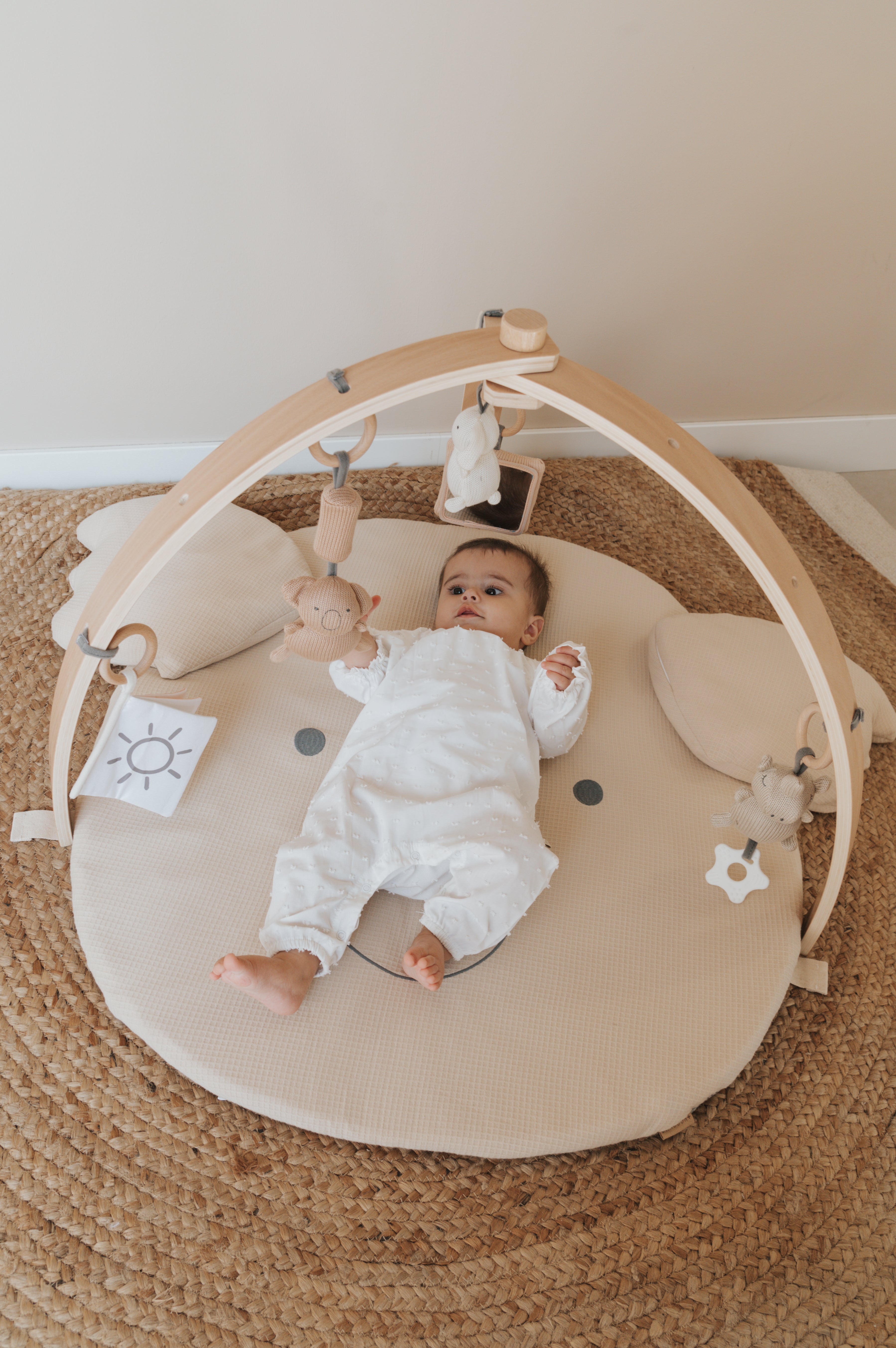 Gracias a sus materiales naturales y detalles cuidadosamente diseñados, es perfecto para jugar boca abajo y para momentos de juego seguros y estimulantes.