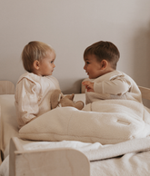 De Igloo-slaapzakken en sneeuwpakken zijn gemaakt met een binnenkant van natuurlijk Velvet – zacht, ademend en zacht voor de huid – en een buitenkant van gerecycled polyester, dat bestand is tegen regen en wind. Ze combineren technische prestaties met duurzaamheid.