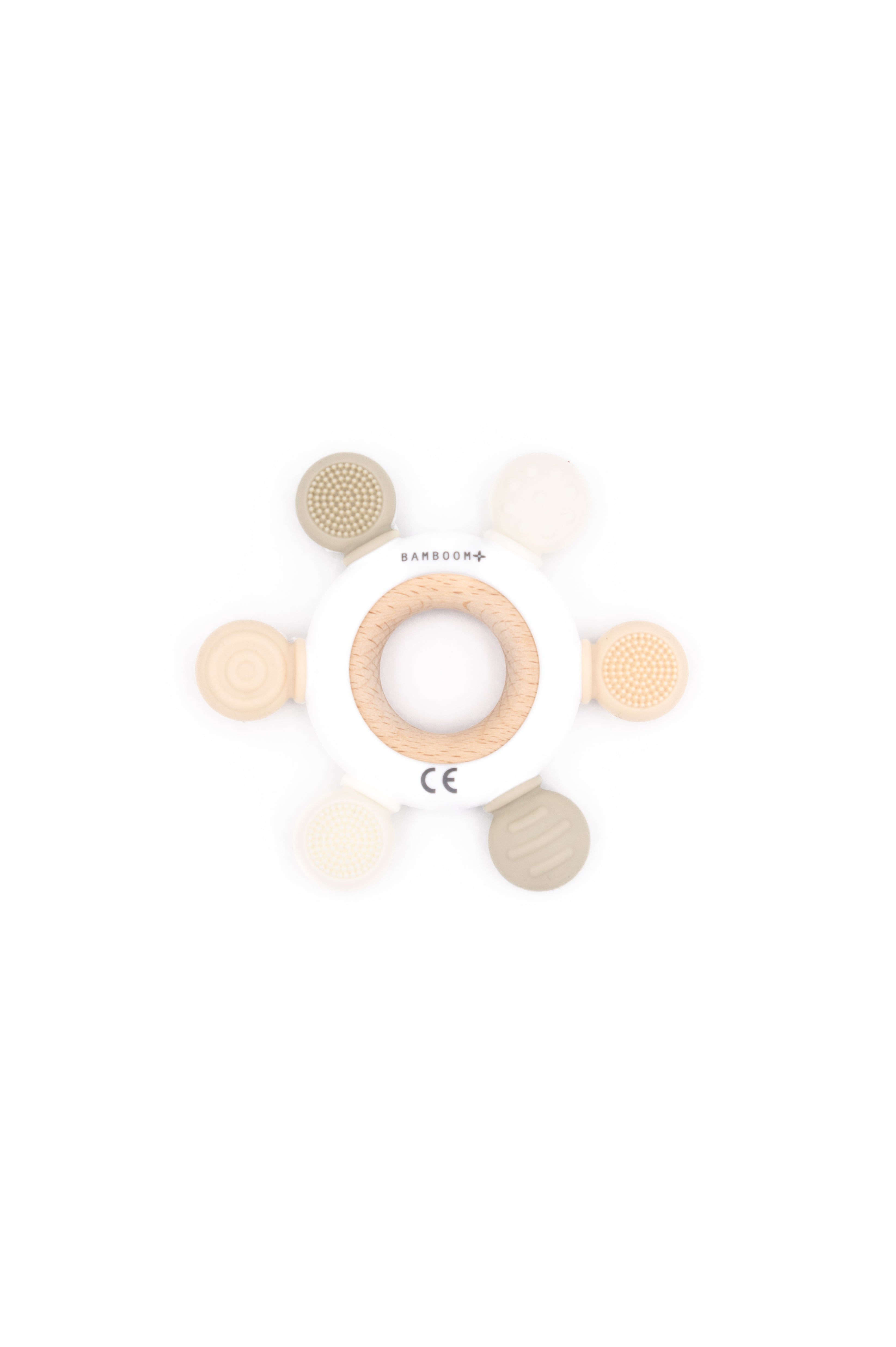Massaggiagengive in Legno e Silicone indispensabile per il momento della dentizione, originale anche come regalo per un bimbo o una bimba.
