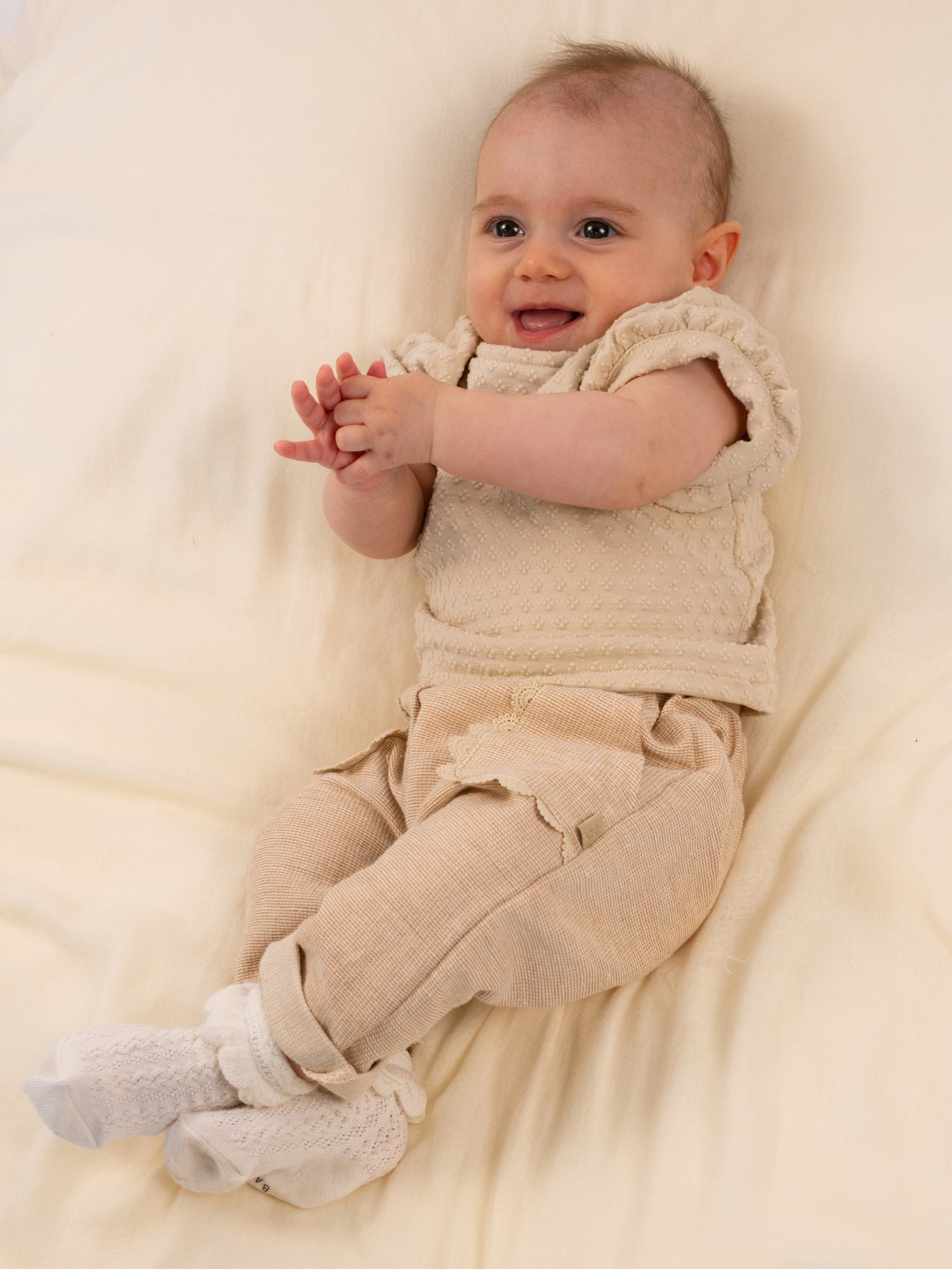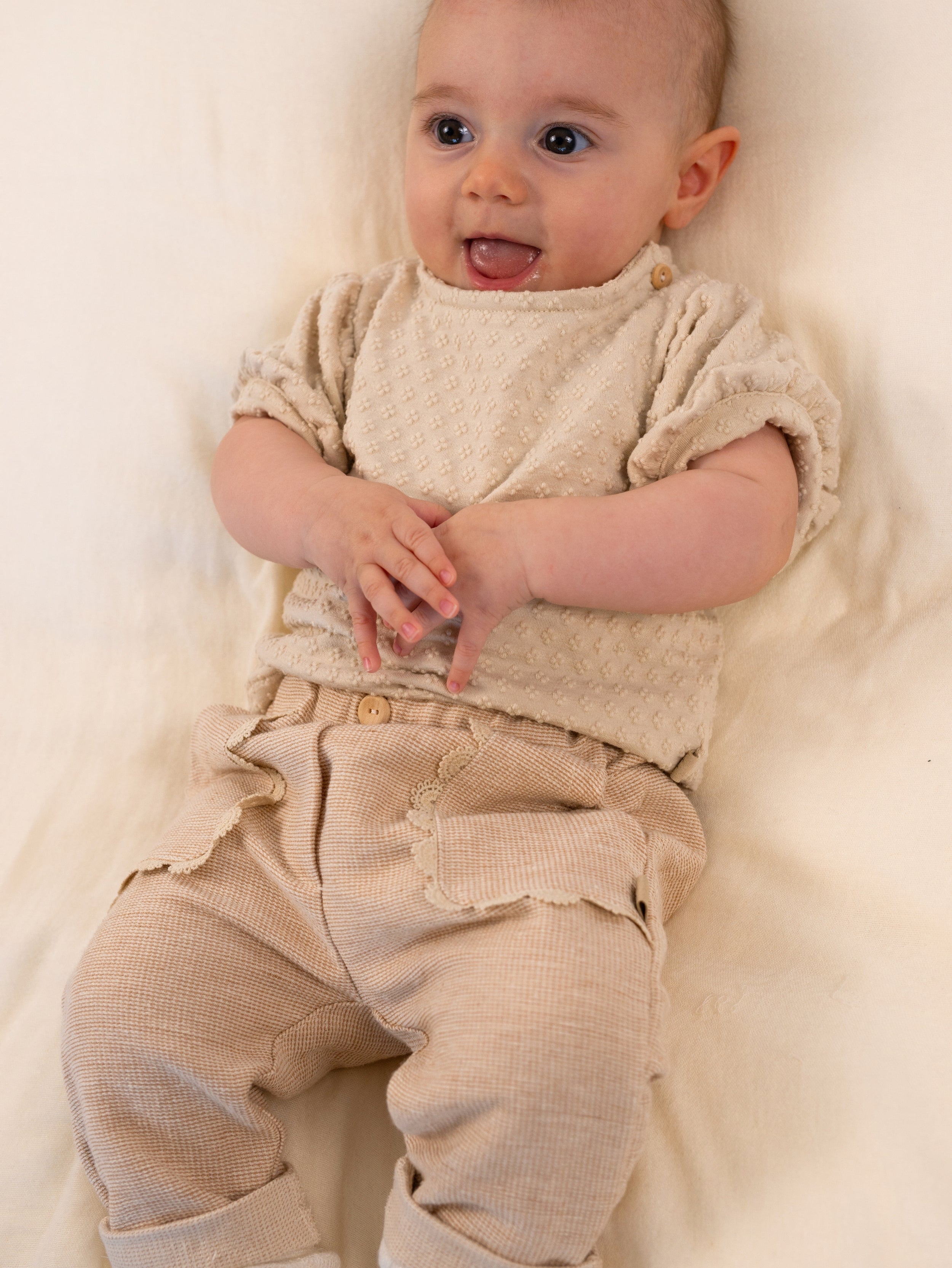 - Pantaloni bimba dal carattere elegante e ricercato, pensati per valorizzare anche i look più curati con un tocco distintivo.