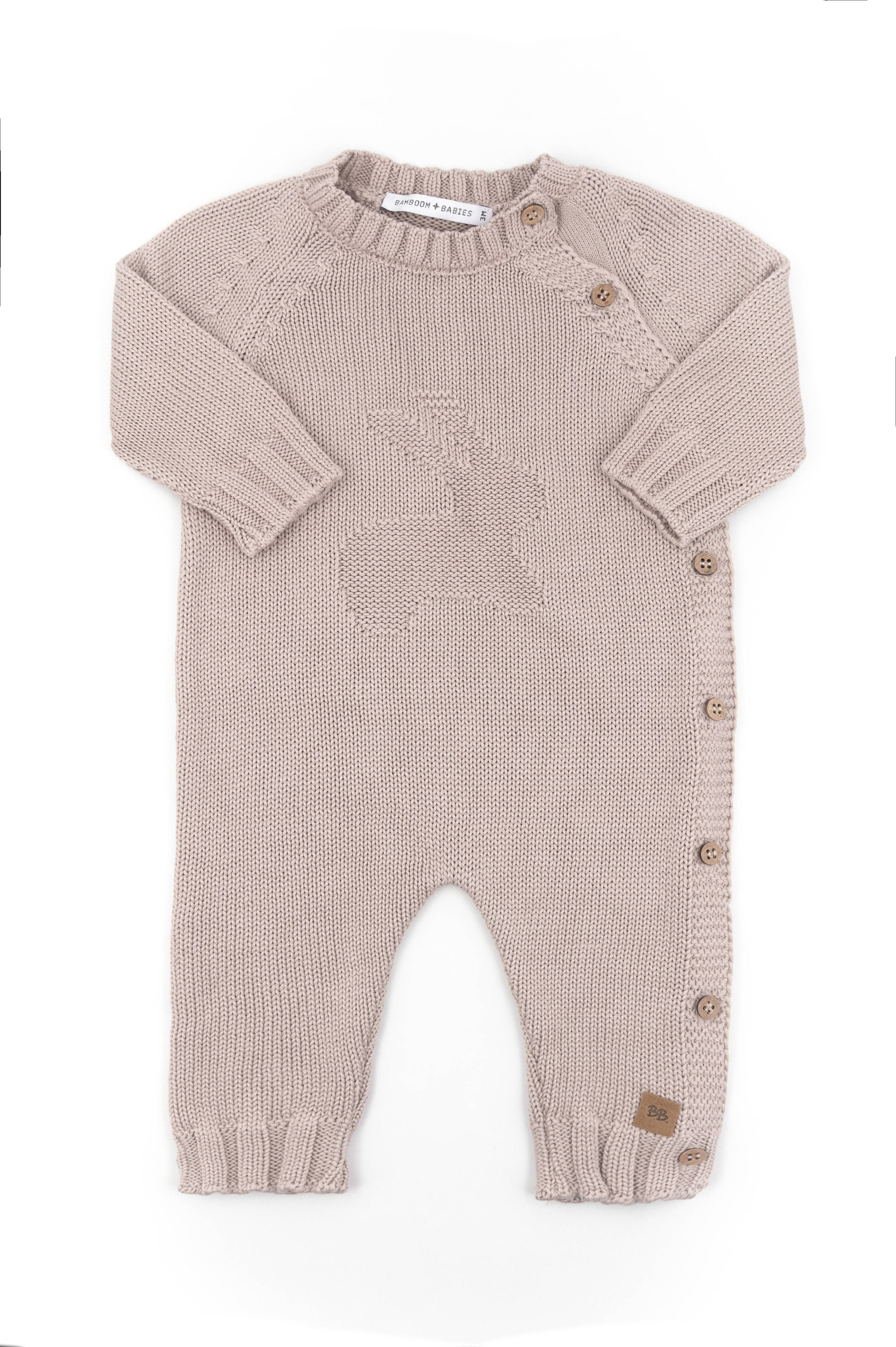 La lavorazione a maglia dona un aspetto raffinato, mentre il dettaglio del coniglio in rilievo aggiunge un tocco giocoso e dolcissimo. Il design è pensato per garantire libertà di movimento e massimo comfort dalla nascita fino ai primi mesi.